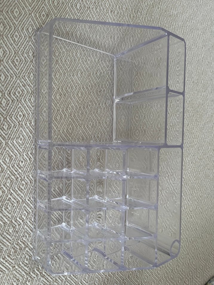 Şeffaf yapısıyla çeşitli makyaj malzemeleri ve fırçalar için çok bölmeli organizer. Eşyaları kolayca bulmanızı sağlar.