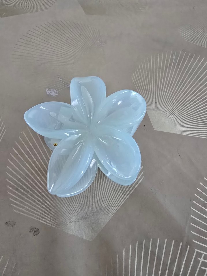 Şeffaf mavi yapılmış çiçek şeklinde saç tokası, minimal ve bohem tarzlara uygundur. Pastel tonlarıyla retro ve hippie havası katar.