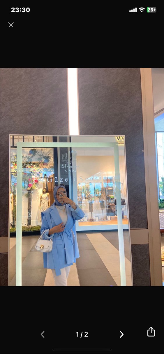 Şeffaf tasarımlı, mavi midi trençkot, kesik yaka ve uzun kolludur. Rahat kesimi ve hafif batik desenleriyle trend sokak stili için uygundur. S m uyumludur