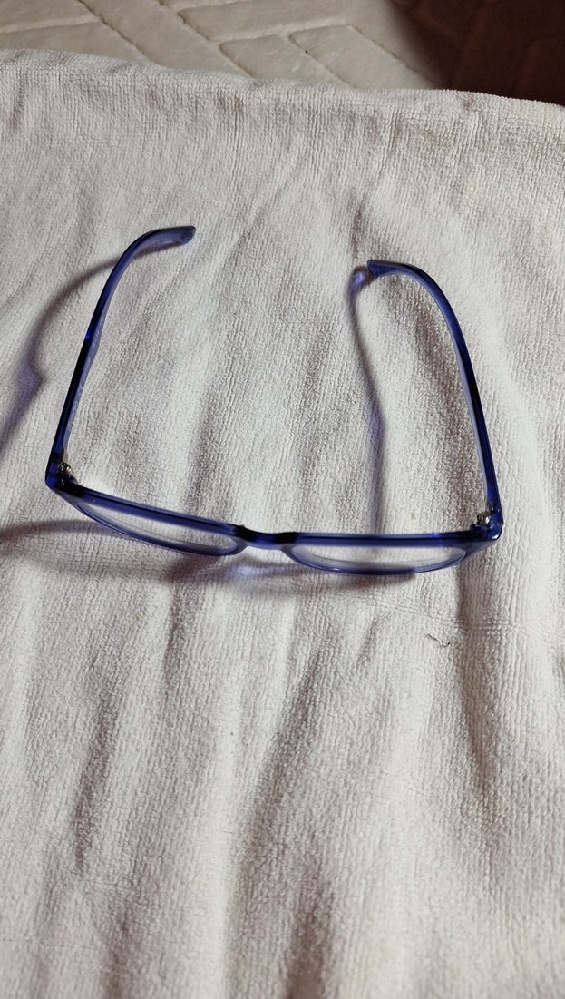 Şeffaf mavi çerçeveli, minimalist tasarıma sahip kadın gözlüğü, sade ve temel bir stil sunar, gri tonlarında.