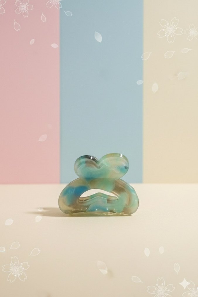 Şeffaf mavi pastel renkte, plastikten yapılmış minimalist ve çağdaş tarzda kadın saç tokası.