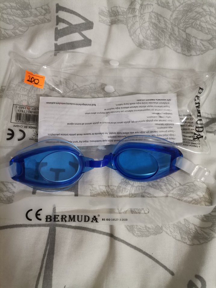 Şeffaf çerçeveli mavi yüzücü gözlüğü, plajda rahat ve tam oturan minimalist, renkli ve baskılı tasarım. ️
