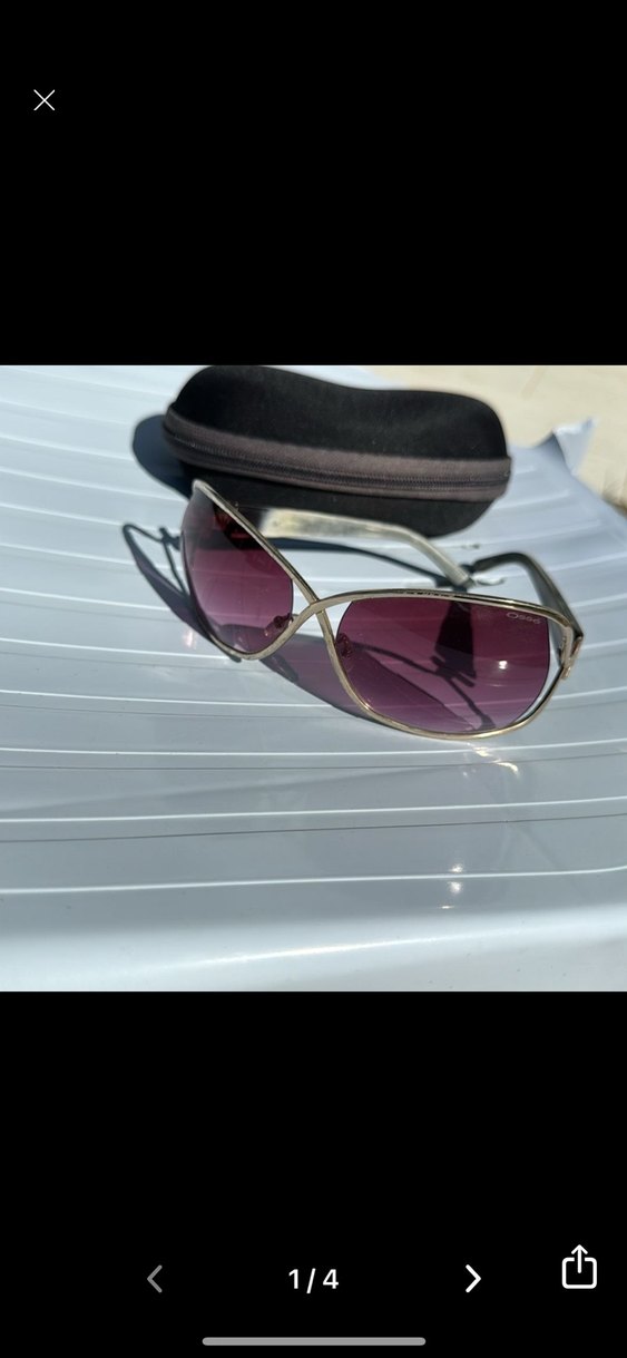 Şeffaf çerçeveli ve canlı mor camlı kadın güneş gözlüğü, minimal ve çağdaş avant-garde tarzını yansıtıyor. Koruyucu kılıf ile birlikte gelir.