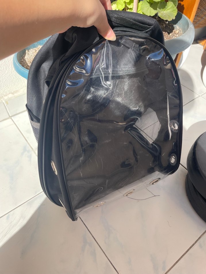 Küçük evcil hayvanlar için şeffaf ön paneli ve siyah renkli taşıma çantası. Görünürlük ve hava akışı sağlar. Kedim sadece 2 gün kullandı yeni aldım hiç bir sorunu yok