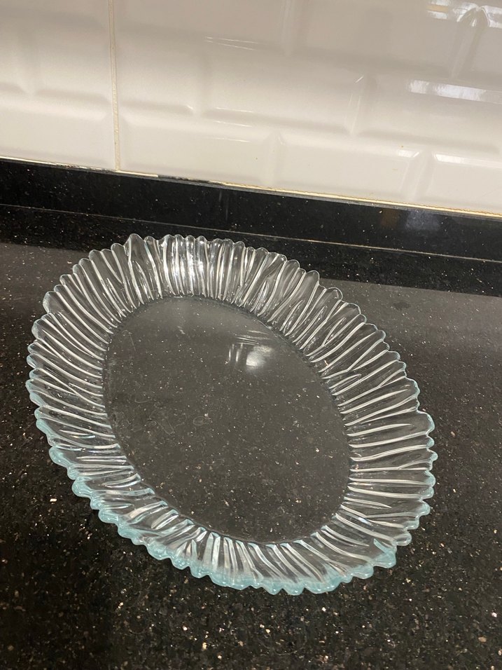 Dalgalı kenarlı şeffaf oval dekoratif çerçeve,Borcam ortama zarif bir dokunuş katar. Fotoğraf veya sanat eserleri için uygundur. Meyve tabağı ,Sunum tabağı olarak çok ideal bir hediye Çeyizime geldi hiç kullanılmadı yeni ürün Kutusu yok paketli olarak geldi