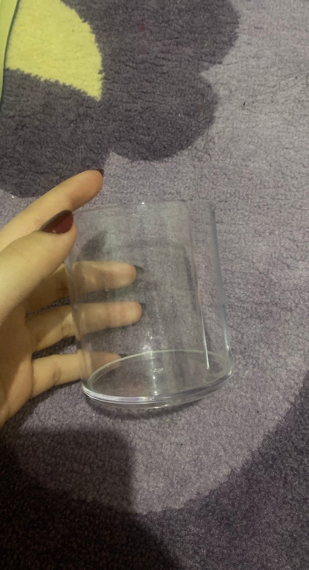 Şeffaf cam pamukluk, silindirik ve sade tasarıma sahiptir. Düz yüzeyli ve sağlam tabanlıdır.