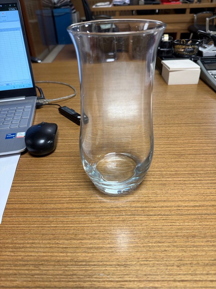 Parlak, şeffaf camdan yapılmış, yumuşak kavisli şekle sahip vazo.