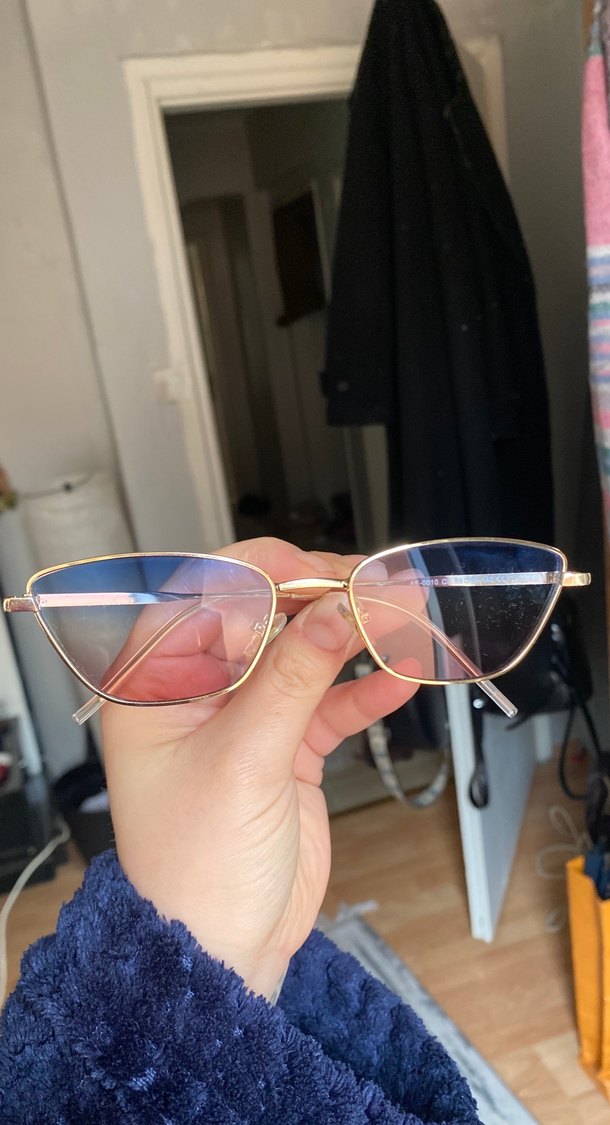 Şeffaf çerçeveli, pastel pembe-mavi tonlarında kadın gözlüğü, Paris sokak modasını yansıtan trend bir günlük stil sunar.