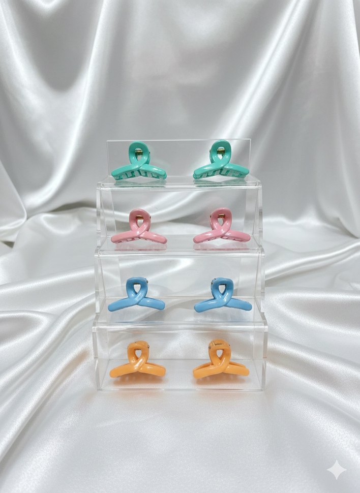 Şeffaf plastikten yapılmış pastel renklerde kadın saç tokaları seti. Minimalist ve modaya uygun tasarımıyla öne çıkar.