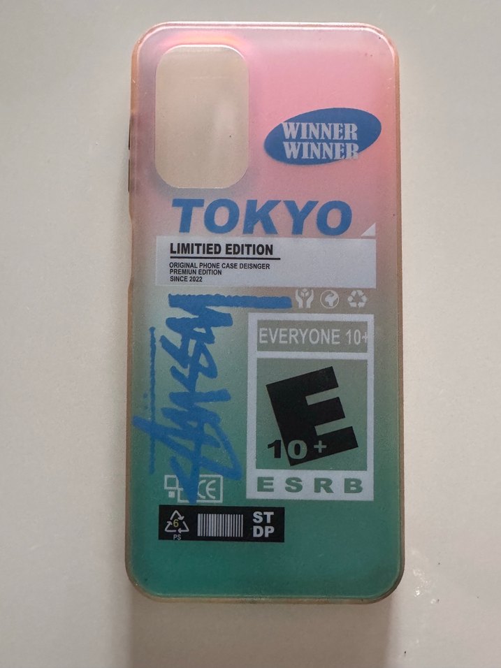 (SAMSUNG A23 )Şeffaf pastel renkli, Tokyo temalı grafikler ve ESRB değerlendirmeleri içeren sokak stili telefon kılıfı.