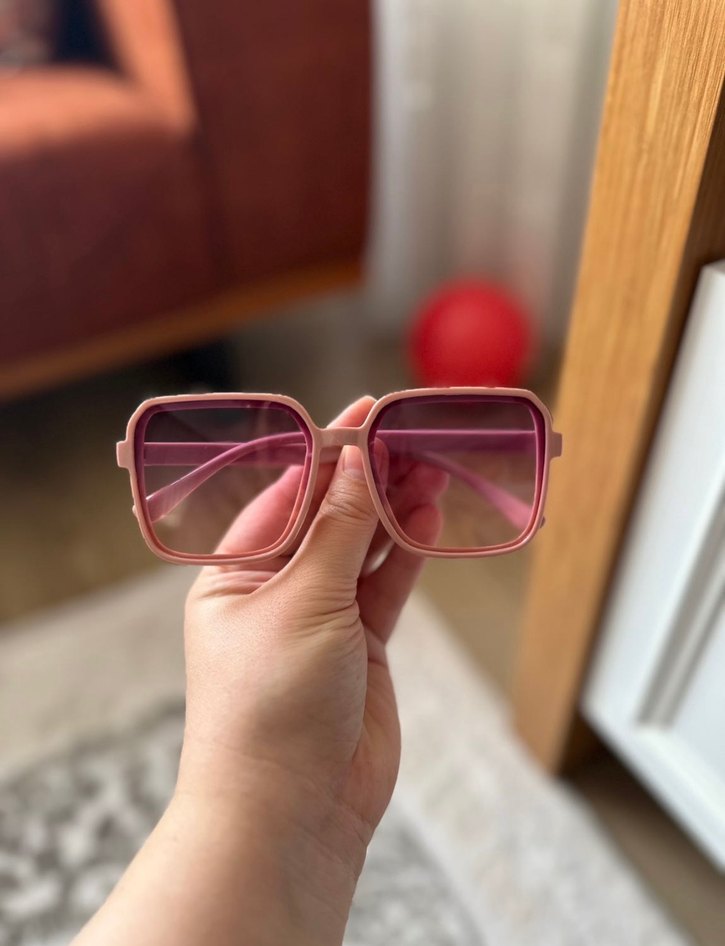 Şeffaf Pembe Büyük Kare Güneş Gözlüğü