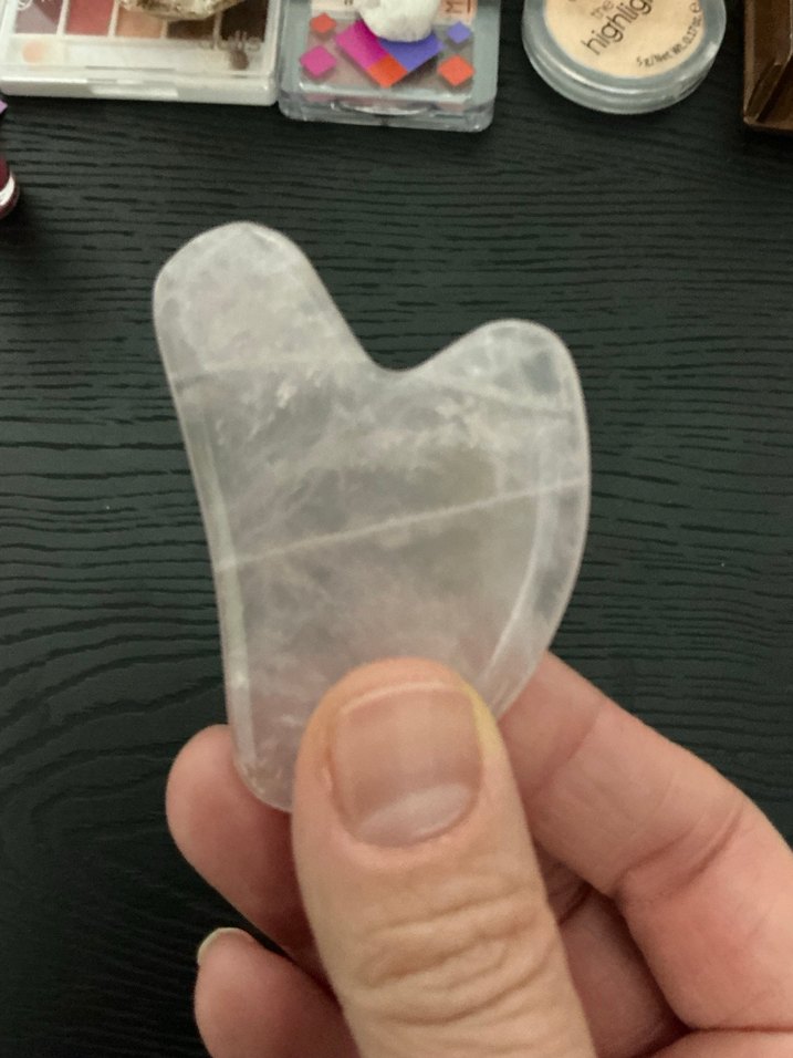 Şeffaf doğal taştan yapılmış gua sha masaj tahtası, cilt dolaşımını artırmak ve rahatlama sağlamak için kullanılır.