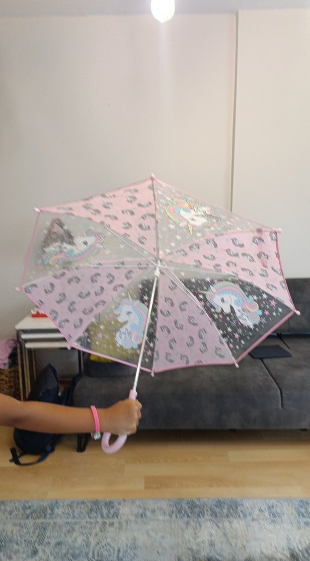 Şeffaf Pembe Unicorn Desenli çocuk Şemsiyesi