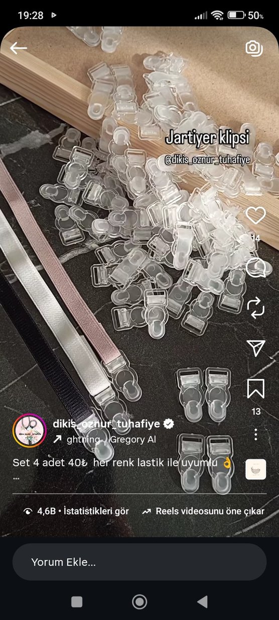 4 adet şeffaf plastik jartiyer klipsi seti. Basit ve işlevsel tasarım