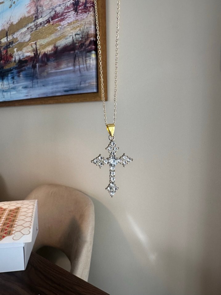 Şeffaf Quartz Taşlı Haç Kolye