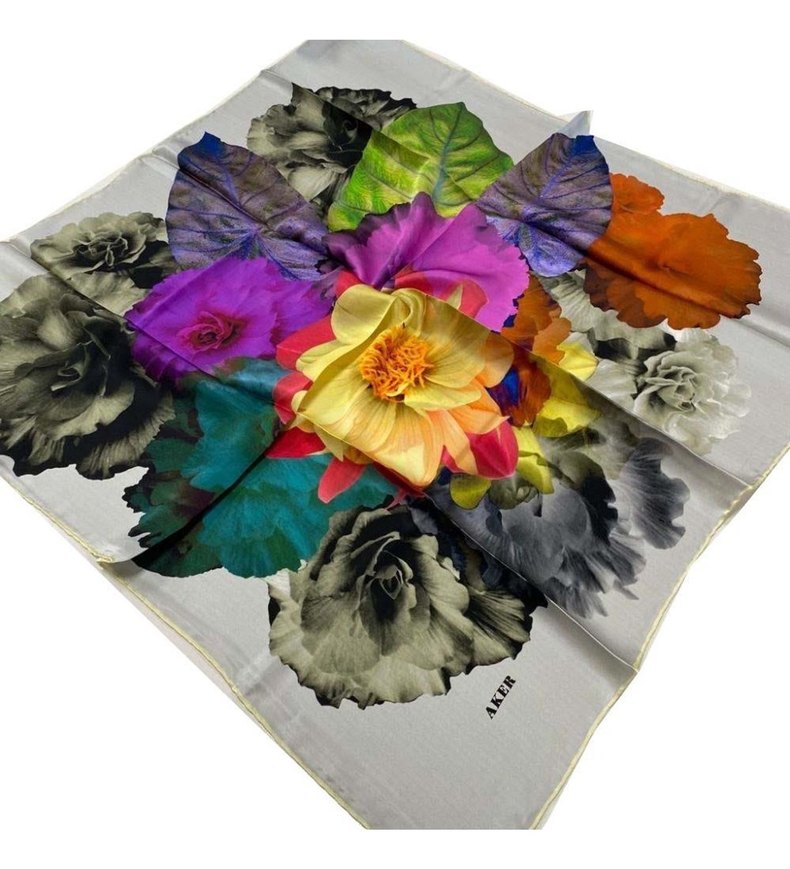 Şeffaf, ipeksi kumaştan yapılmış kadın fularıdır. Canlı koyu renkli çiçek desenleri bohem ve yenilikçi bir tarz sunar.