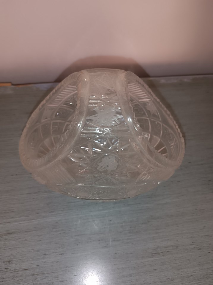 Şeffaf renginde, işlemeli desenlere sahip yuvarlak formda şekerlik. Hafif rengiyle zarif bir görünüm sunar.