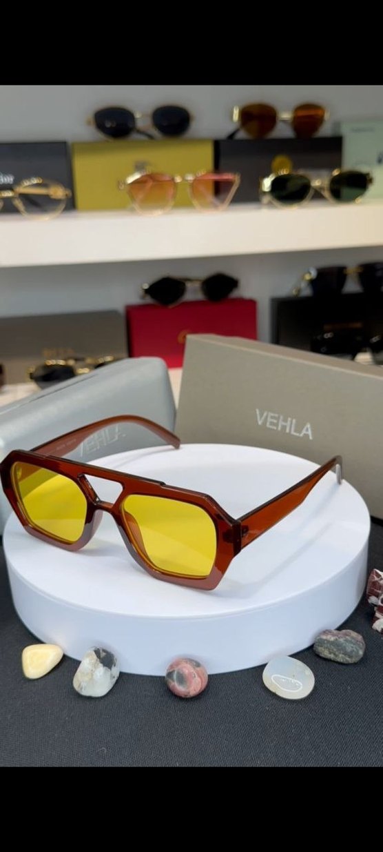 Şeffaf Sarı Minimalist Kadın Güneş Gözlüğü VEHLA