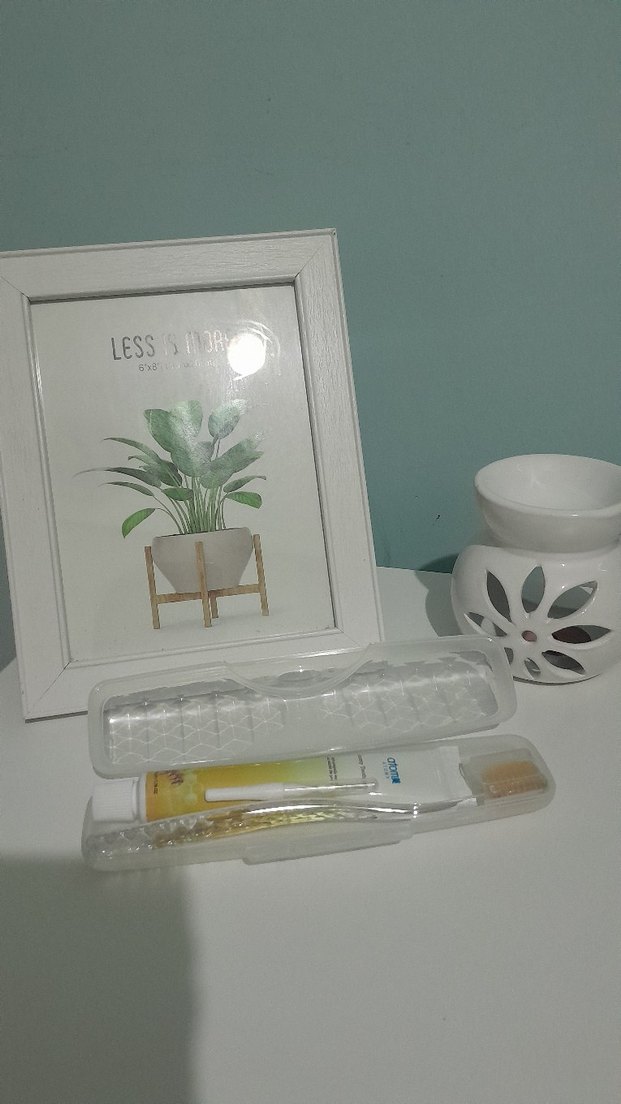 Diş fırçası ve macunu için şeffaf bir seyahat kutusu, temiz ve düzenli tutar.
