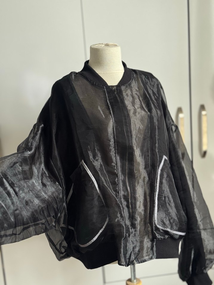 Şeffaf Siyah Geniş Kesim Transparan Ceket