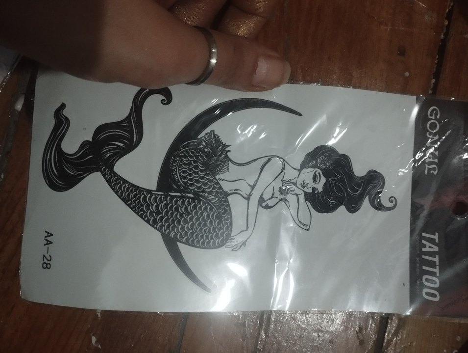 bir ay kalıcı tattoo siyah gotik denizkızı baskılı kadın charm, romantik ve bohem tarzlara uygun, koyu renkli retro görünümler için ideal. ♀️