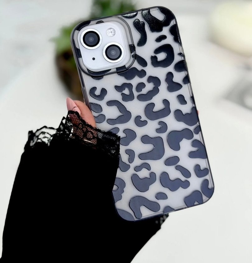 Şeffaf Siyah Gri Leopar Desenli Telefon Kılıfı