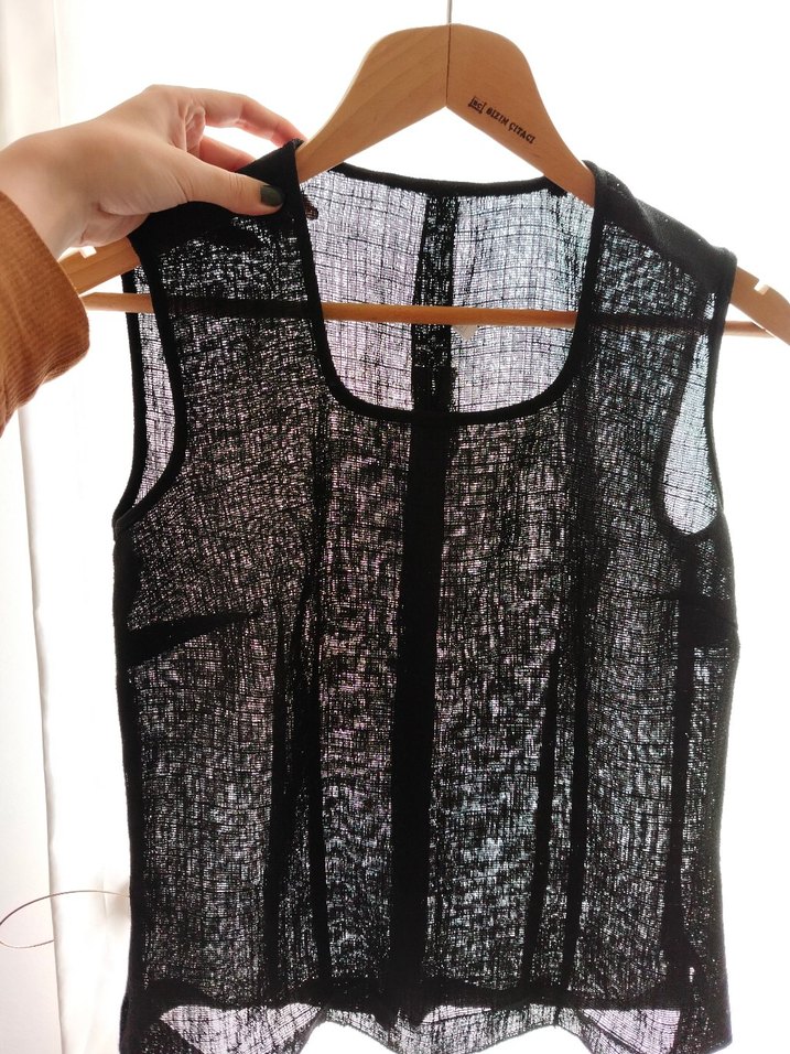 Şeffaf Siyah Kolsuz Keten Bluz