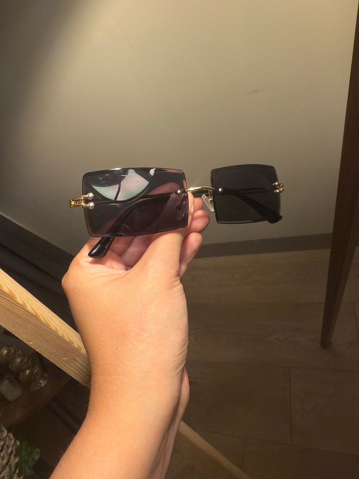 Cesur kadınlar için şeffaf siyah dikdörtgen lensli minimalist tasarıma sahip güneş gözlüğü, sokak modasına uygun. ️