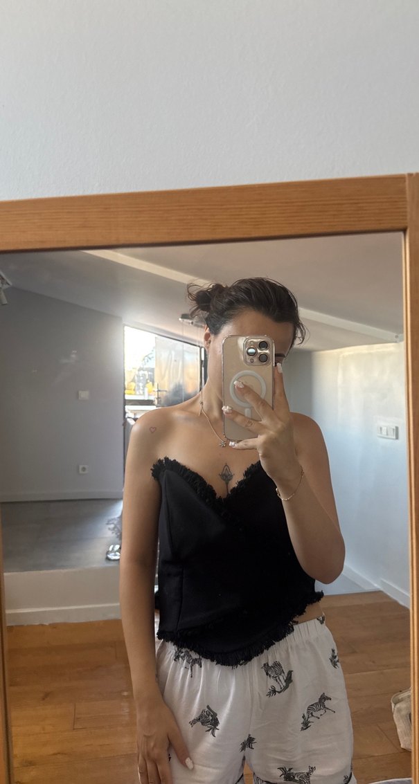 Şeffaf siyah, straplez ve vücuda oturan bu gotik tarz büstiyer, midi boyda ve desensizdir. Kolsuz yapısıyla günlük kullanıma uygundur.