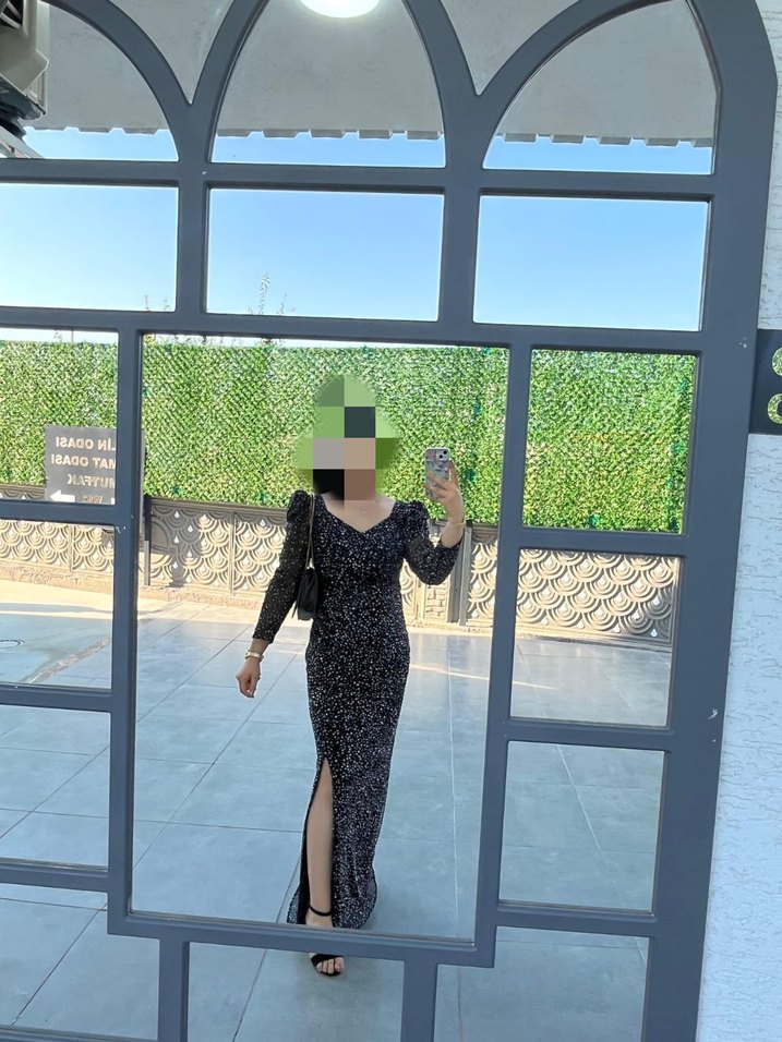Şeffaf Uzun Kollu Yılan Desenli Siyah Elbise