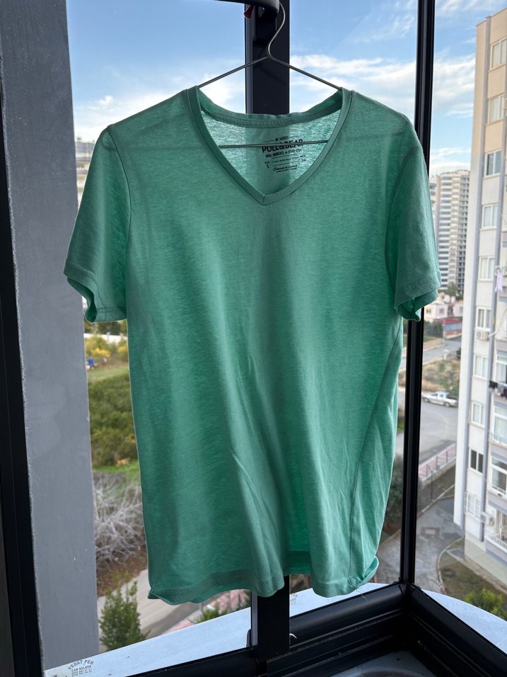 Şeffaf V Yakalı Yeşil Salaş Tişört
