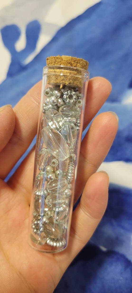 Cam mantarlı tüpte çeşitli şeffaf ve gri tırnak süsleri bulunur. Tırnaklara ışıltı katmak için uygundur.