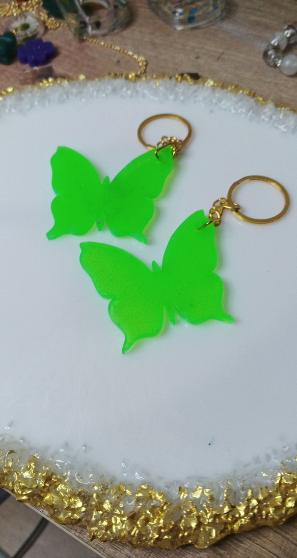 Şeffaf yeşil kelebek şeklinde, minimalist ve renkli tasarıma sahip anahtarlık, bohem ve retro stiller için uygun.