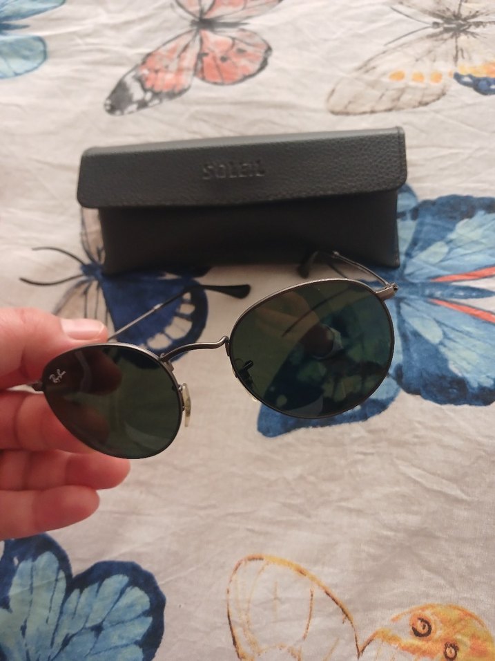 Şeffaf mavi çerçeveli, koyu renk yuvarlak erkek güneş gözlüğü. Siyah koruyucu kılıf ile birlikte gelir. Minimalist ve bohem tarzlara uygundur. orjinal ray ban gözlük