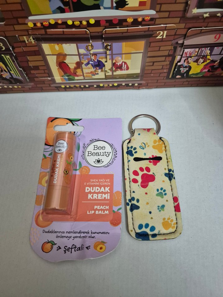 Şeftalili Dudak Kremi ve Paw desenli lipstick tutucu,anahtarlık