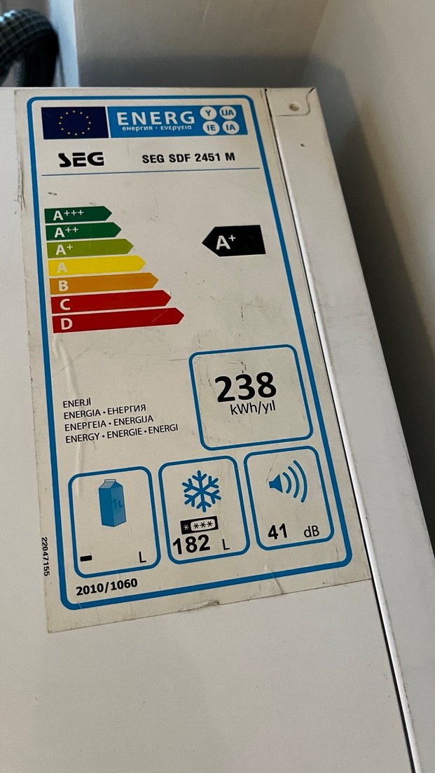 Seg marka Enerji verimlilik sınıfı A+ olan beyaz güç bankası. 182 litre kapasite ve 41 dB ses seviyesi ile çalışır. Yıllık enerji tüketimi 238 kWh'dir. ⚡
