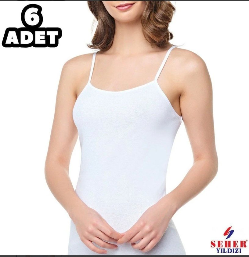 Seher Yıldızı Beyaz İnce Askılı Kadın Atlet-6 Adet