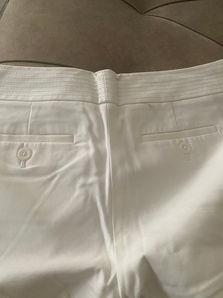 Pamuklu, pilili, beyaz kumaş pantolon. Normal kesim ve midi boy. Ofis için uygun,