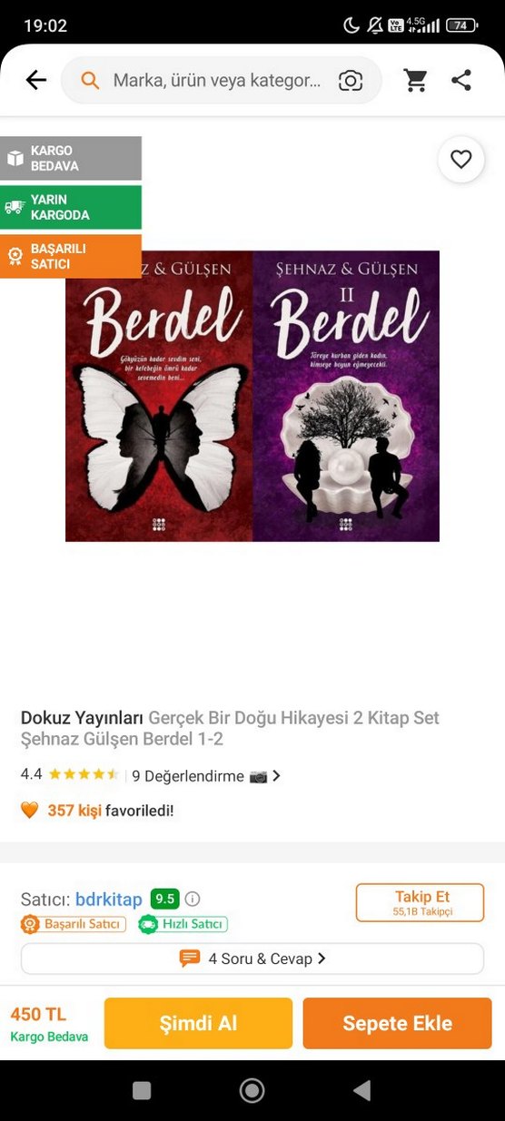 Dokuz Yayınları'ndan Şehnaz Gülşen'in yazdığı, gerçek bir Doğu hikayesini anlatan Berdel 1-2 kitap seti. 4.4 yıldız ve 357 kişi tarafından favorilendi.