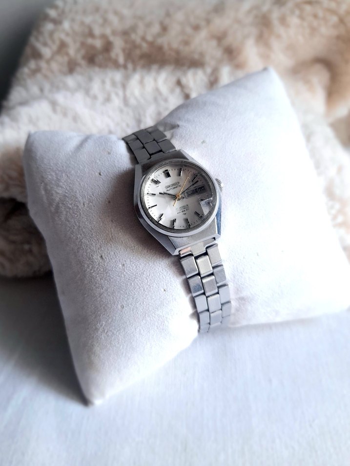 ⌚Orjinal Seiko Hi-Beat 6006-6971 Vintage Otomatik 36.000 – Japon Üretim kadın kol saati, 1960 lı yıllara aittir. Yaklaşık 60 yıllıktır. İnanılmaz derecede rahat hafif ve çok şıktır. Pilli değildir, mekaniktir. ✔️ Çalışıyor, 60 yıldır tıkır tıkır çalışıyor. ✔️ 36.000 vuruş Hi-Beat mekanizma (yüksek hassasiyet). Diğer modellerinden üst segment sebebidir. Saatçilikte yüksek frekanslı, üst seviye mekanizma demektir. ✔️ Gün–tarih sorunsuz çalışıyor ✔️ Japan üretim ✔️ Kasa ve kadran orijinal, vintage patina mevcut ✔️ Cam kesme kristal, hafif çizikleri vardır. Vintage izlerdir. (fotoğraflarda görülüyor) ✔️ Paslanmaz orjinal Seiko çelik bilezik Koleksiyonluk bir modeldir. Kadran yazıları silik değildir. Metalik gümüş rengi yazı olduğu için, fotoğraflarda net olmuyor.Parlıyor. Ciddi alıcıya makul pazarlık payı vardır.