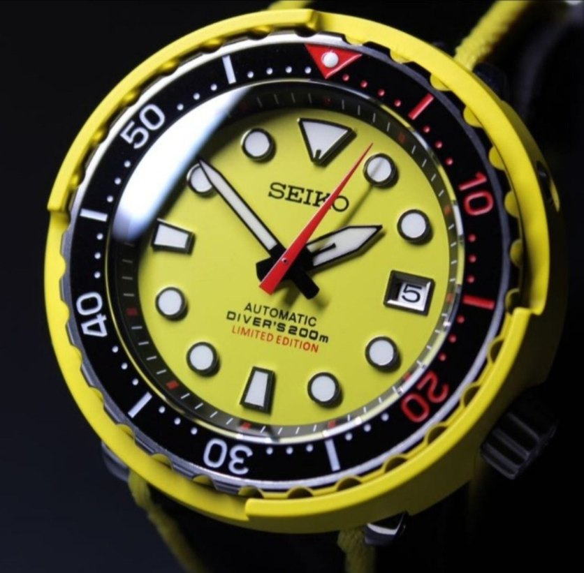 Seiko saat parçaları ile özel tasarlanan bir saattir. 4R35b Mekanizmaya sahip 41 saat güç rezervi var. BWG9 güçlü fosforlara sahip. 43 mm kasa çapı bulunuyor. Tuna Çelik kasa müthiş bir ürün. Saat 11 yönünde noktadan da küçük sarı kaplamasında kavlama vardır. Alıcısına şimdiden hayırlı olsun. ⌚ Yanında kauçuk diver kayışa ek nato kordonları ile gönderim yapılacaktır.