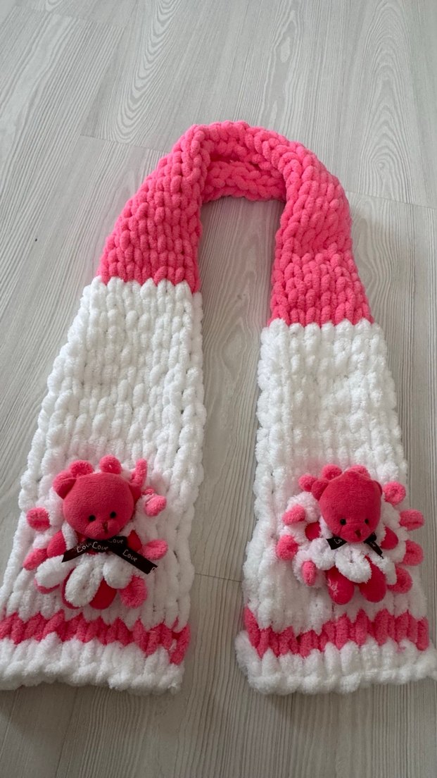 ŞEKER Pembe Beyaz Örgü ATKI (Sıfır)