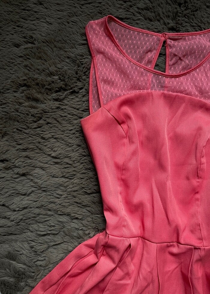 Şeker Pembe Bisiklet (Gizli straplez) Transparan Yaka Kısa Elbis
