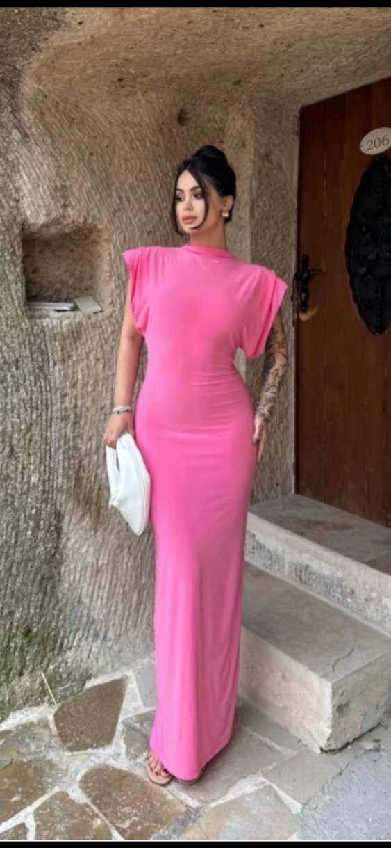 Şeker pembesi omuzları drapeli s beden esnek kumaş