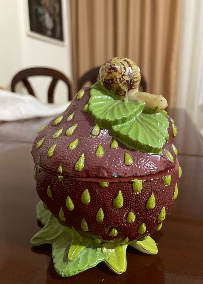Antika 1707 yılı Fransa’da kurulan değerli cam şirketi Vallerysthal markasına ait el yapımı Fransız opalin çilekli şekerlik sunumluk… Ölçü: 11*14 cm Görselleri dikkatle inceleyiniz iade yoktur...