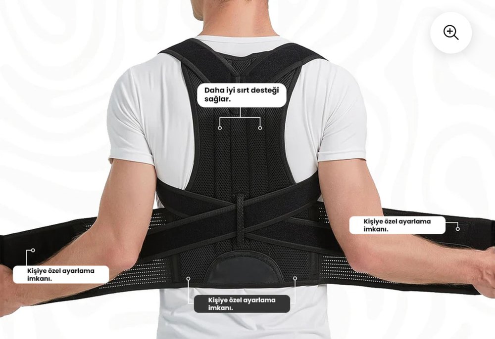 SEKORS Ayarlanabilir Dik Duruş Siyah Bel, Sırt ve Omuz Korsesi