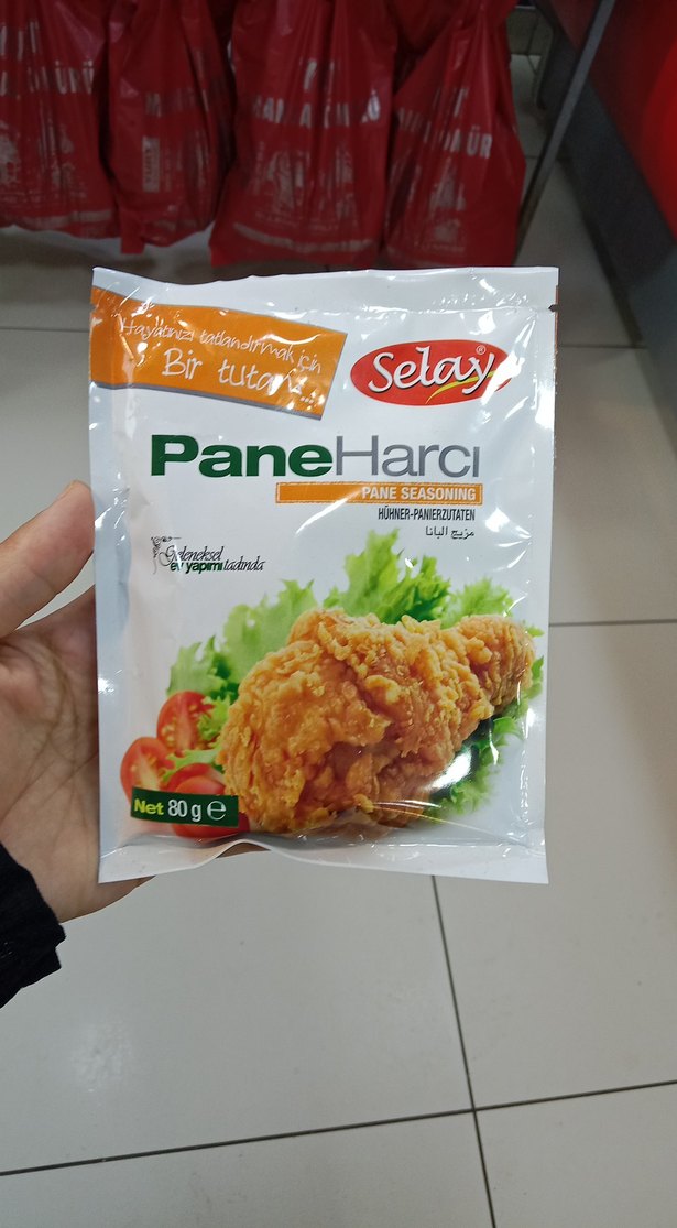 Selay Pane Harcı, kızartmalarda kullanılan parlak bej renkli 80 gramlık pane baharat tozudur.