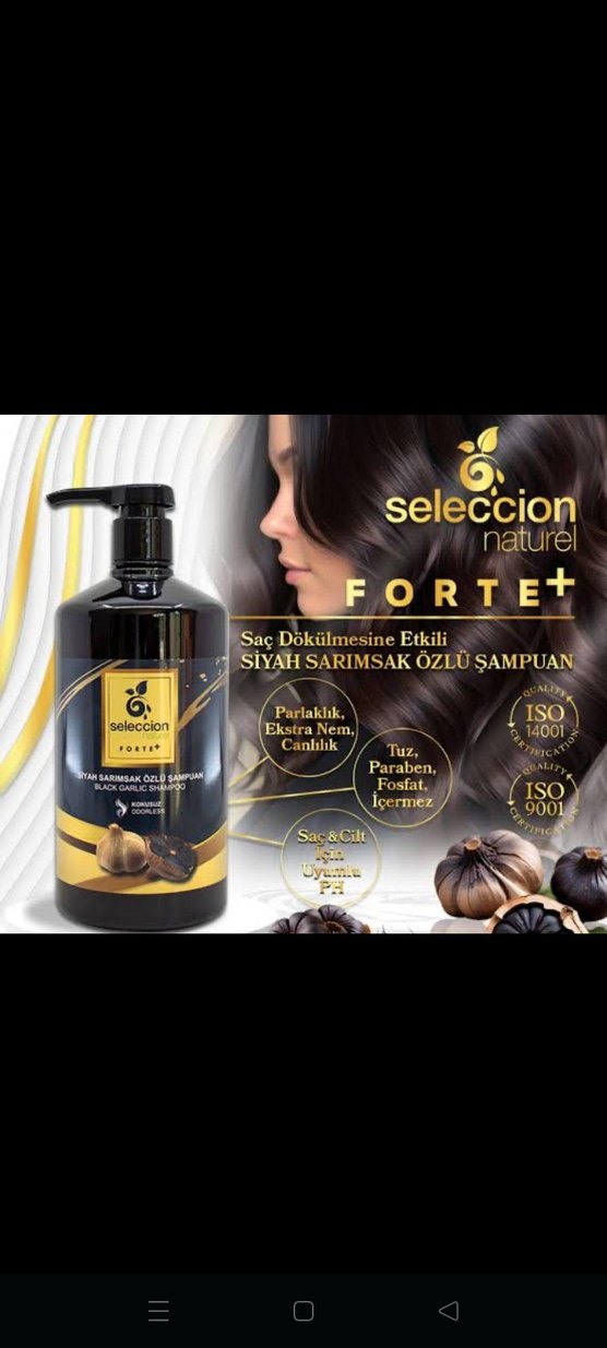 Seleccion Nature şampuan, saç dökülmesine karşı siyah sarımsak özü içerir. Parlaklık, ekstra nem ve canlılık sağlar. Tuz, paraben ve fosfat içermez. Saç ve cilt için dengeli pH'a sahiptir.