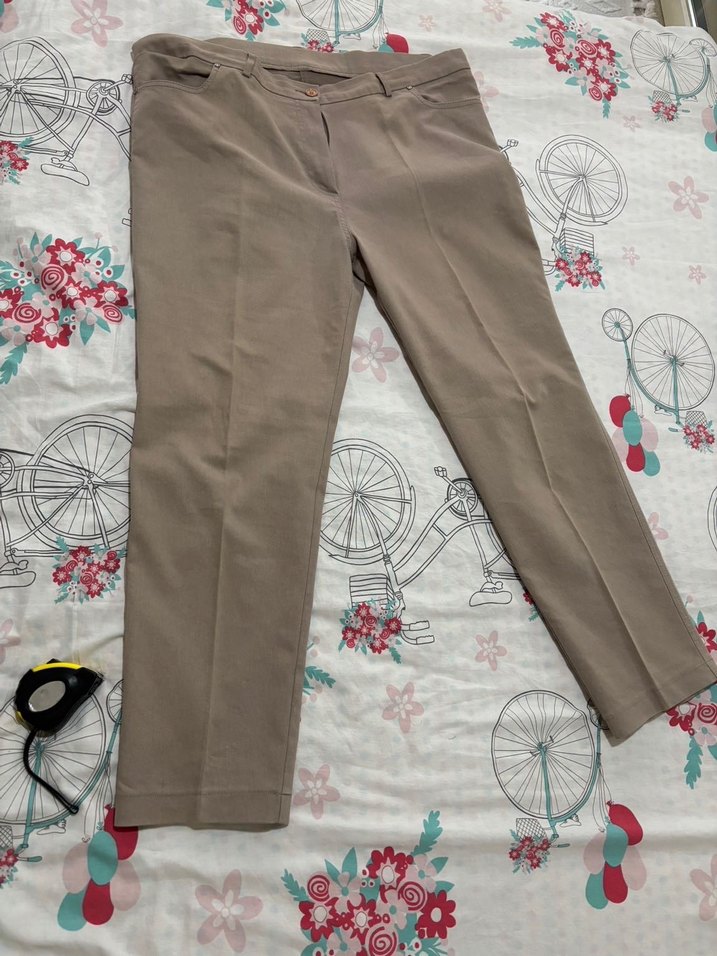 Bej renkli, regular fit, midi boy kadın kumaş pantolon. Bel detaylı, desen içermeyen sentetik kumaştan üretilmiştir. Günlük kullanım için uygundur.