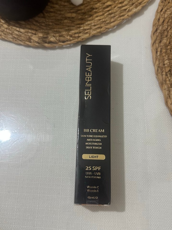 Selin Beauty BB krem, açık bej tonunda, cilt tonunu eşitler, yaşlanma karşıtı ve nemlendirici özelliklere sahiptir. SPF 25 koruması ve C ile E vitamini içerir. ✨yeni aldım yüzüme koyu geldiği için satıyorum 1 nohut tanesi kadar kullanıldı. Buğday tenlilere göre